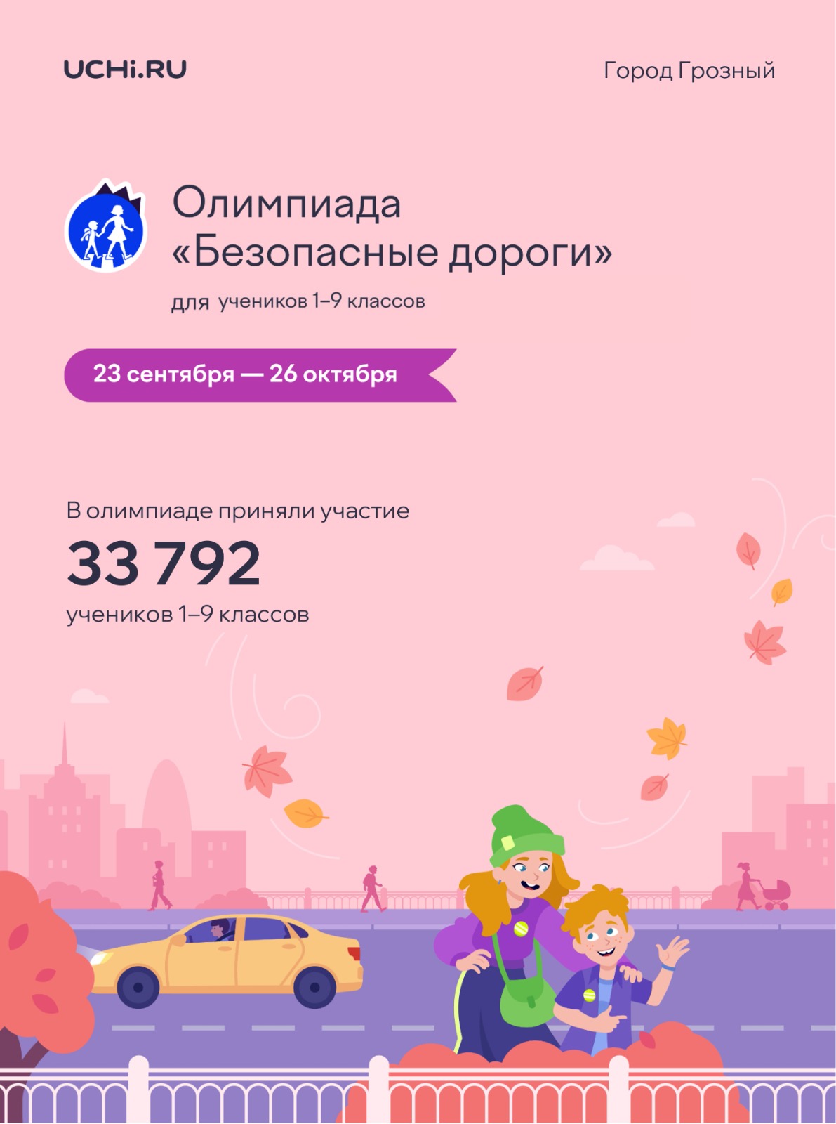 Осталось семь дней до завершения первого тура бесплатной всероссийской олимпиады «Безопасные дороги». К соревнованию уже присоединились 33.792 учеников города. Чтобы все желающие успели принять участие в состязании, поделитесь ссылкой с учителями: ...