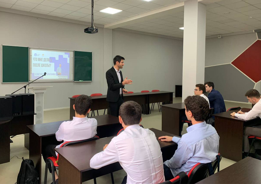 06.09.2022«Поделись своим Знанием»! В рамках lll Всероссийской просветительской акции в МБОУ «Гимназии № 5» города Грозного прошла встреча обучающихся старших классов с заведующим педагогической мастерской ЧГПУ, научным сотрудником МГУ им. М.В. Ломоносова Алиханом Динаевым. Алихан Мавладиевич рассказал ребятам о развитии науки и инноваций в вузе, об успешных реализованных проектах и том, кем можно стать после окончания школы. Организаторы акции - Российское общество «Знание» при поддержке Министерства просвещения РФ и Министерства науки и высшего образования РФ. Цель проведения - передача молодёжи актуальных и достоверных знаний, как одной из главных ценностей современного общества. Акция охватит сотни тысяч школьников и студентов как в городах-миллионниках, так и в самых удаленных уголках страны. В рамках акции перед школьниками выступят спикеры, которые рассказывают о достижениях в различных сферах: «Науки и технологии», «Управление», «Карьера и предпринимательство» и т.д.