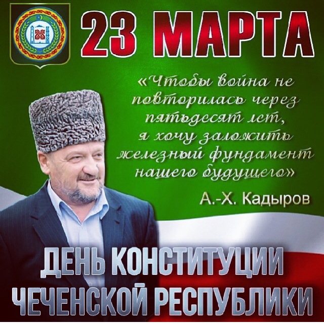 23.03.201923 марта 2003 года в истории нашего народа произошло важное событие – состоялся всенародный референдум по принятию Конституции Чеченской Республики. Это положило начало мирной, созидательной жизни, наполненной яркими победами и свершениями. Инициатором проведения референдума был первый ПРЕЗИДЕНТ ЧЕЧЕНСКОЙ РЕСПУБЛИКИ, ГЕРОЙ РОССИИ АХМАТ-ХАДЖИ КАДЫРОВ (ДАЛА Г1АЗОТ КЪОБАЛДОЙЛА ЦУЬНАН!).Именно благодаря усилиям АХМАТ-ХАДЖИ АБДУЛХАМИДОВИЧА народ проголосовал за принятие Конституции и определил свое будущее в составе Российской Федерации.Со дня проведения референдума прошло 16 лет. За это время во всех сферах деятельности региона, в том числе и в сфере образования, произошли колоссальные позитивные изменения, прочно установились закон и порядок, идет всестороннее социально-экономическое развитие. Поздравляю всех жителей республики с Днем Конституции. Желаю благополучия, мирного неба над головой и долгих лет счастливой жизни.